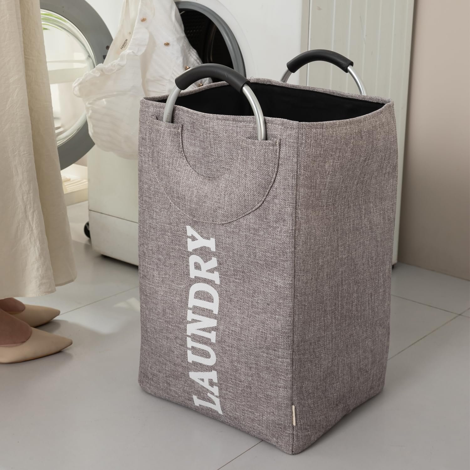 Designed with two sturdy aluminum handles and soft foam padding, this laundry basket ensures a comfortable, non-slip grip. Lightweight and portable, it can be easily carried or hung behind doors or placed beside your washing area or in hallways.