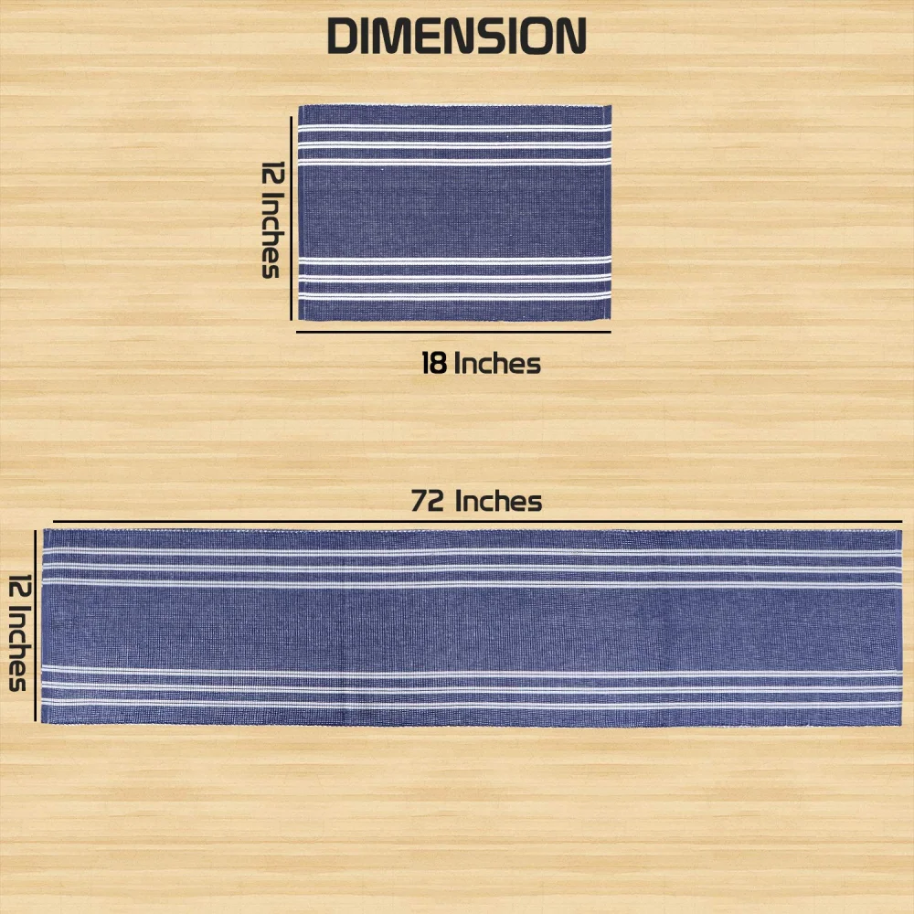 - Package contains a set of 6 cotton ribbed dining table mats with table runner. Size of table mat 18×12 Inches, Size of table runner 12×72 inches.