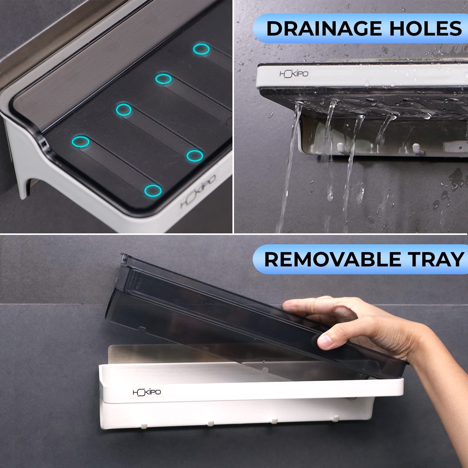 • HASSLE-FREE INSTALLATION – NO TOOLS. NO SCREWS. No More ugly holes in your bathroom or kitchen. Simply choose a smooth surface such as tiles, glass, metal etc. Apply it and you’re done in No Time.