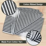 New Cotton Ribbed Washable 6 Table Mats with Runner, Stripped Grey