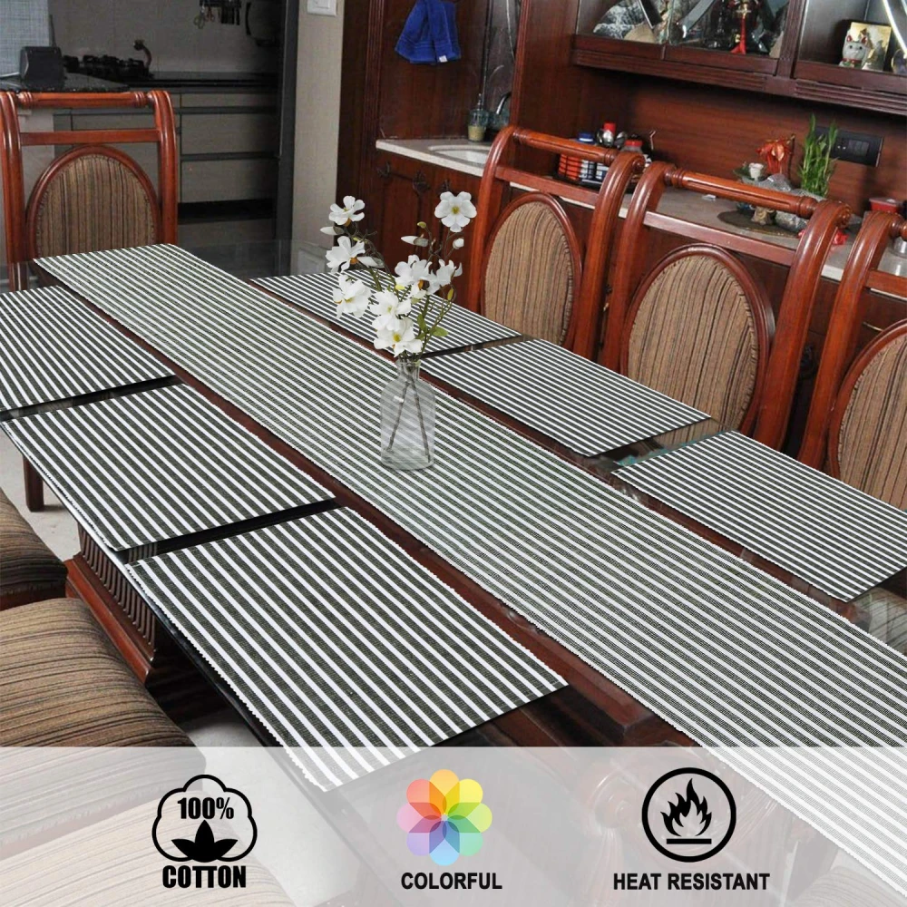 - Package contains a set of 6 cotton ribbed dining table mats with table runner. Size of table mat 18×12 Inches, Size of table runner 12×72 inches.