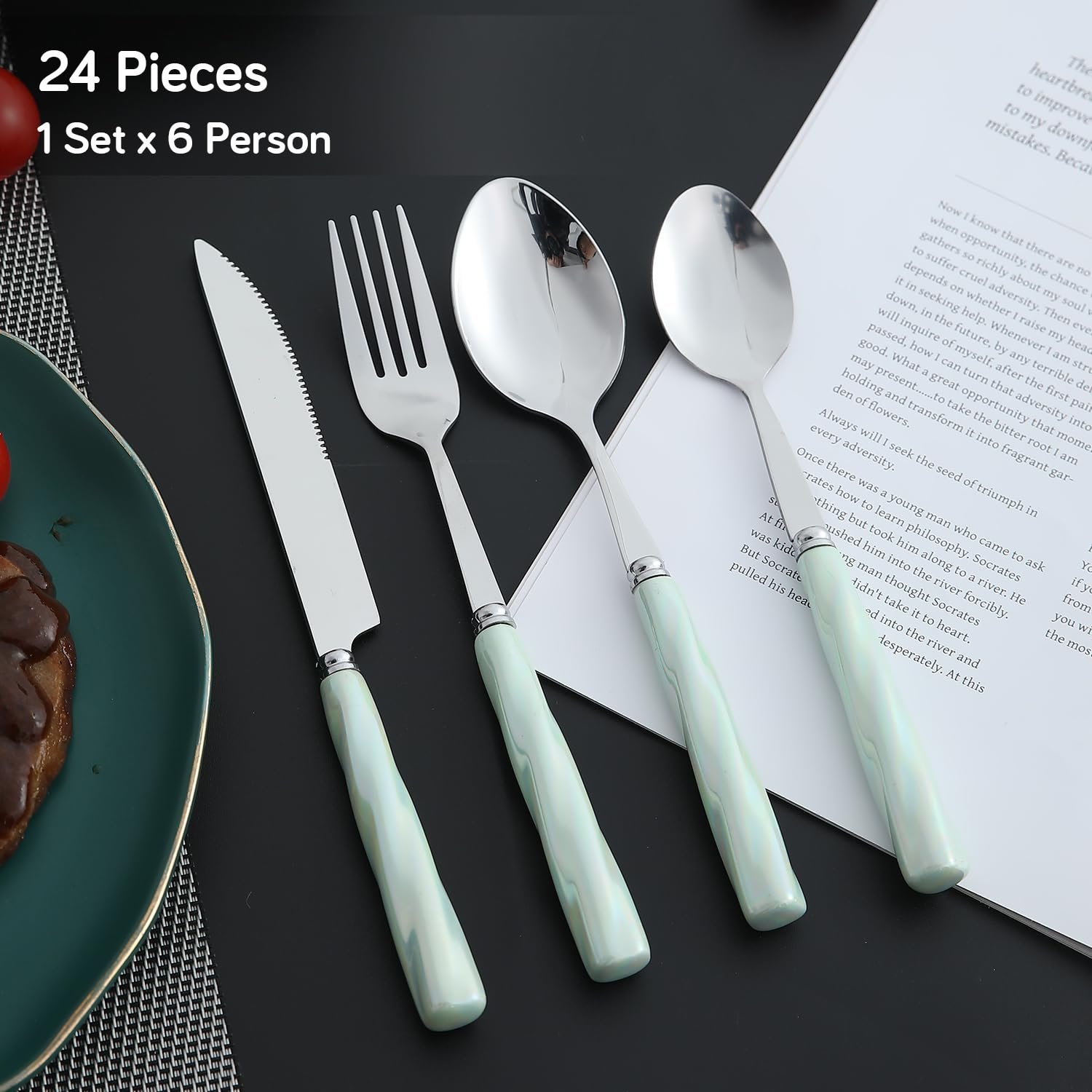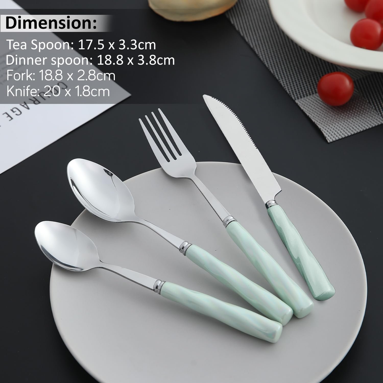New Luxurious Ceramic 24Pcs Silver Cutlery Set for Dinning Table - 6 Spoons, 6 Knives, 6 Fork and 6 Tea Spoons, Mint