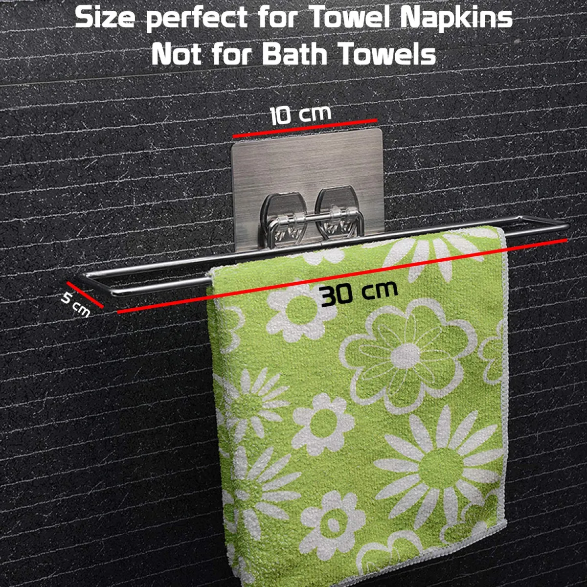 • DURABLE CONSTRUCTION – This Towel Napkin Holder is made of durable Chrome Metal + SEBS + PC, giving it modern look and yet maintaining it’s durability. Can be used in bathroom, kitchen, wash basin area or even for drying kitchen napkins. Length of holder is 30cm, making it larger than it’s contemporaries and allowing towel napkins of all sizes to fit in perfectly