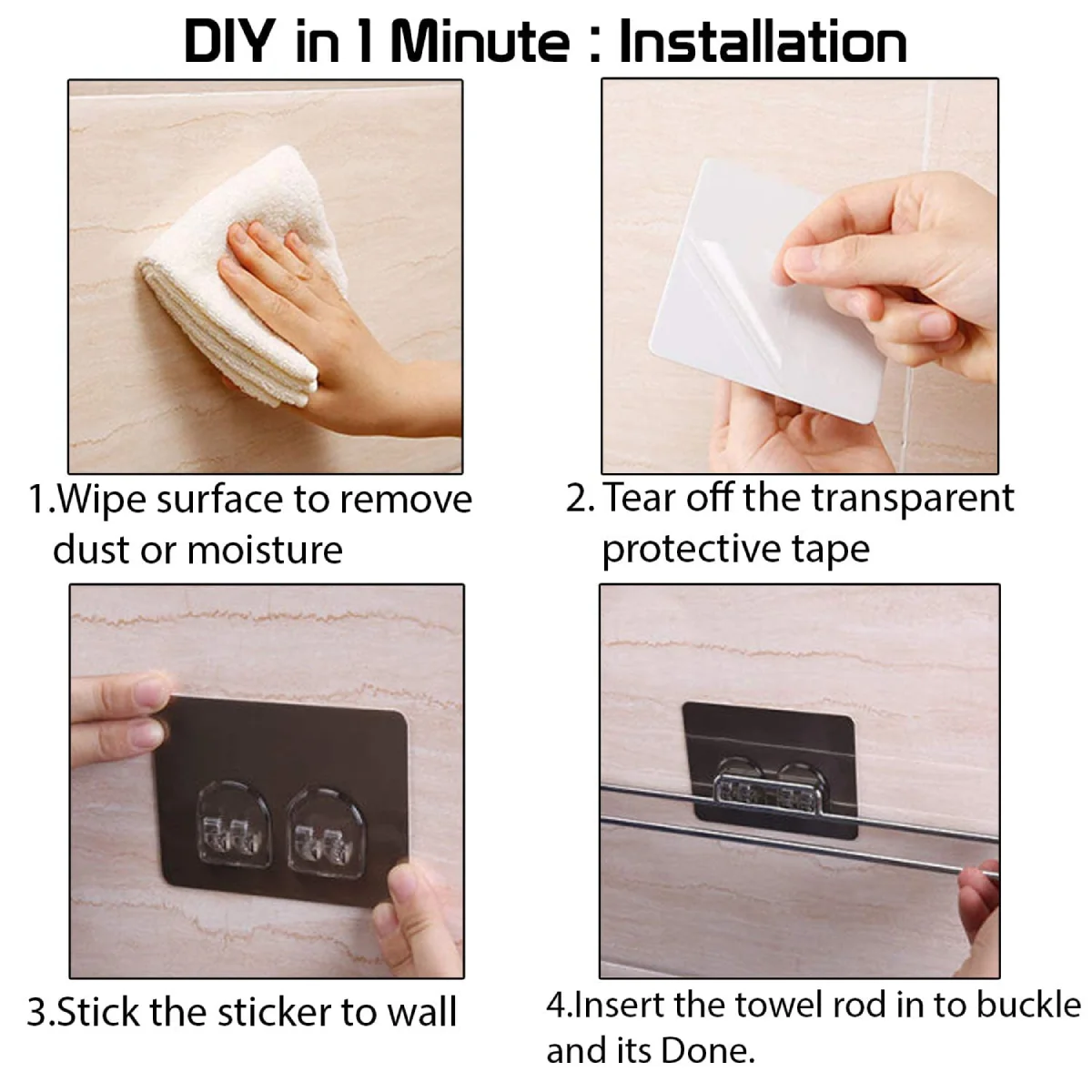 • HASSLE-FREE INSTALLATION – NO DRILL. NO SCREWS. No More ugly holes in your bathroom. Simply choose a smooth surface such as tiles, glass, metal . to install your magic sticker series kitchen and bathroom accessories. Installation Tip – Clean and Dry the surface of application before putting the magic sticker. Press and Flat the magic sticker pad, squeeze the air out from middle to edge. Fit the bathroom napkin holder on the hooks given on magic sticker and you are done