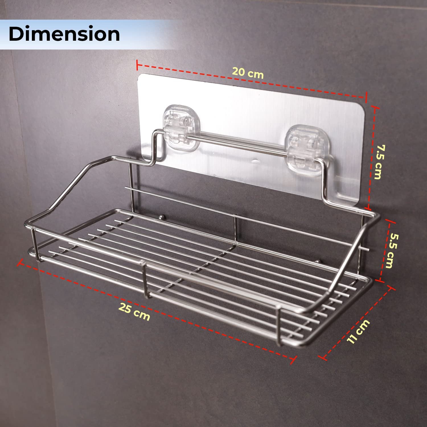 - SPACE SAVER – Dimension 25x11cm makes it perfect to fit any space, even in small bathrooms. This adhesive bathroom shelf is the perfect solution for any apartment or dormitory which has limited space. Detachable design makes it easy to remove and clean. The shelf is especially designed to ensure that it does not lean forward when loaded.