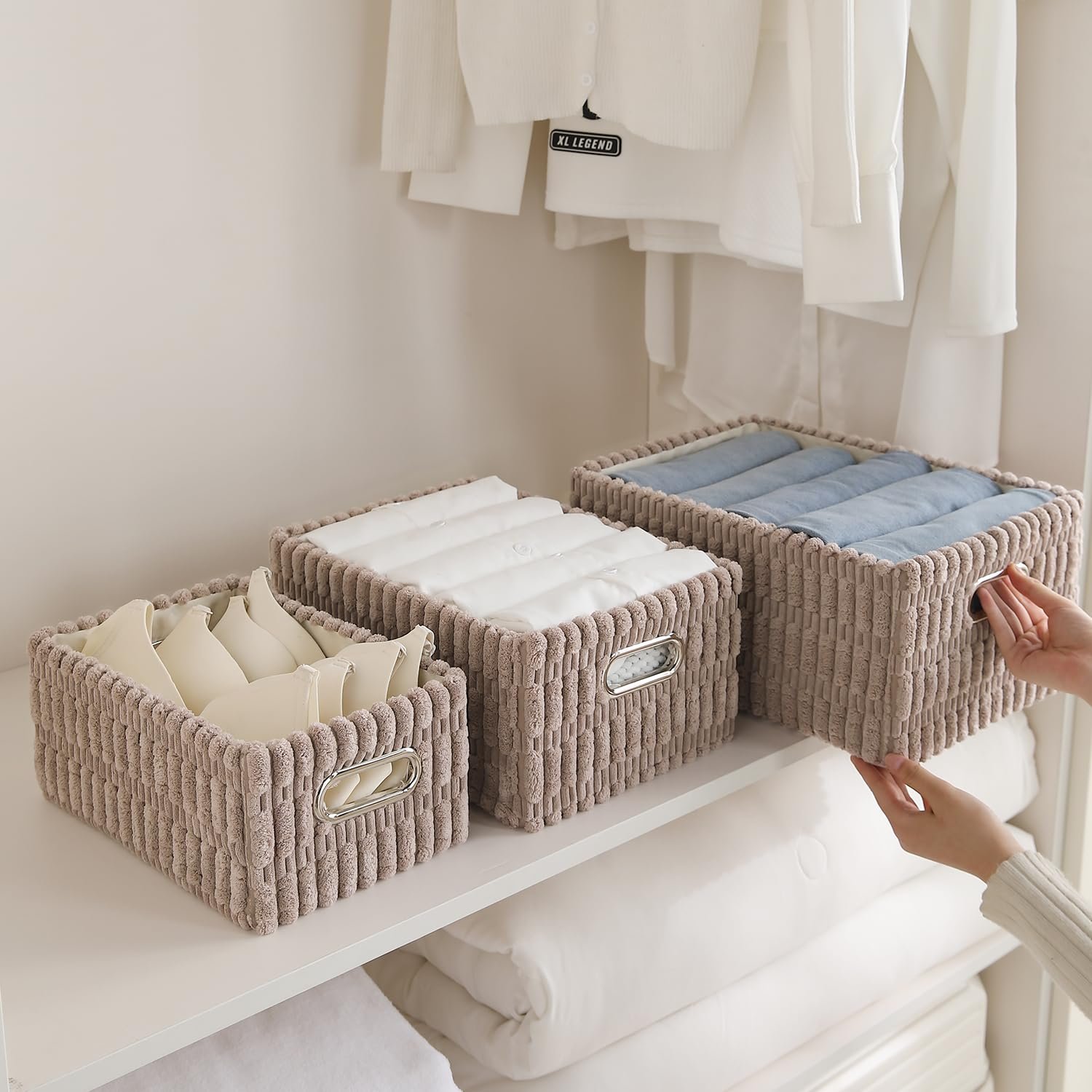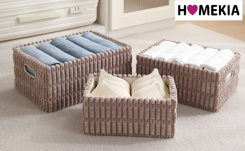 Plush Storage Organizer Baskets for Home – Set of 3 (Latte Coffee, Durable Fabric & Foldable)