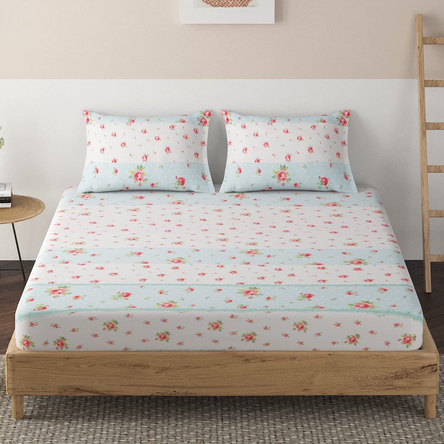 - Adorned with a captivating Floral Stripes Light Blue design. Our bedsheets effortlessly inject a stylish flair into your bedroom decor, elevating its ambiance.