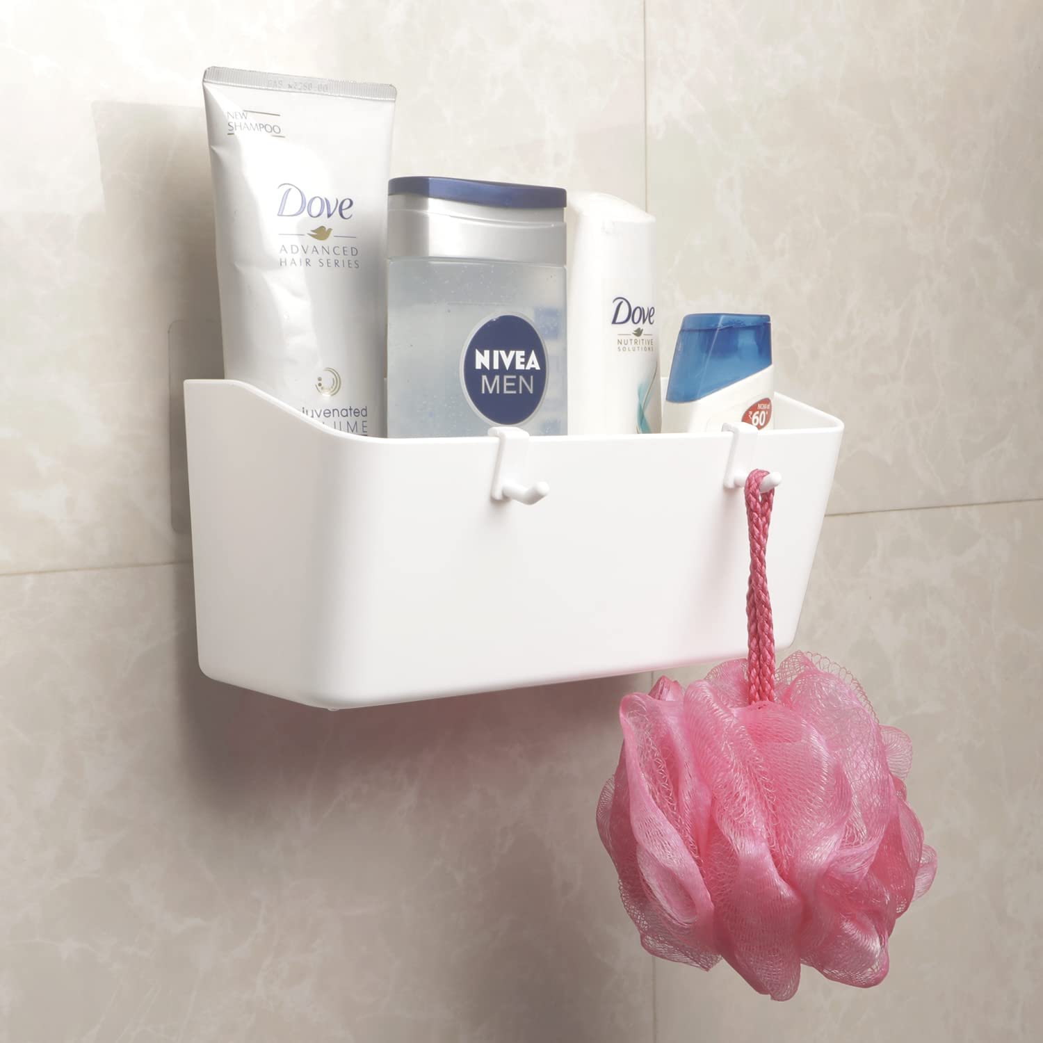 Self Adhesive Plastic Rack for bathroom and kitchen. No drill installation with Magic Sticker technology. Heavy-duty design in elegant white.