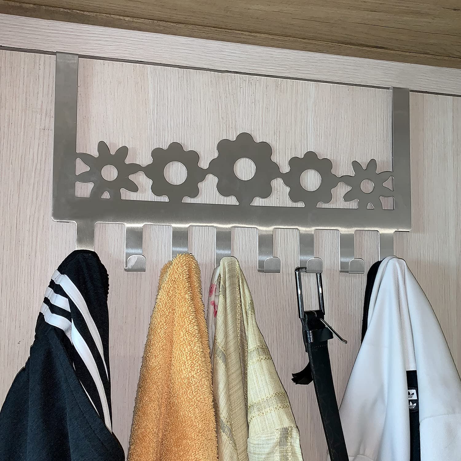- Multipurpose Hook: On Stainless Steel Door Hanger you can hang your Garments / Coats / Jackets / Jeans / Bags / Keys / Umbrellas / Scarfs etc. On the 8 Hooks Provided, Safely Out Of Sight. Because, its provide enough Space to hang your Items. It is suitable for all Homes with Doors.