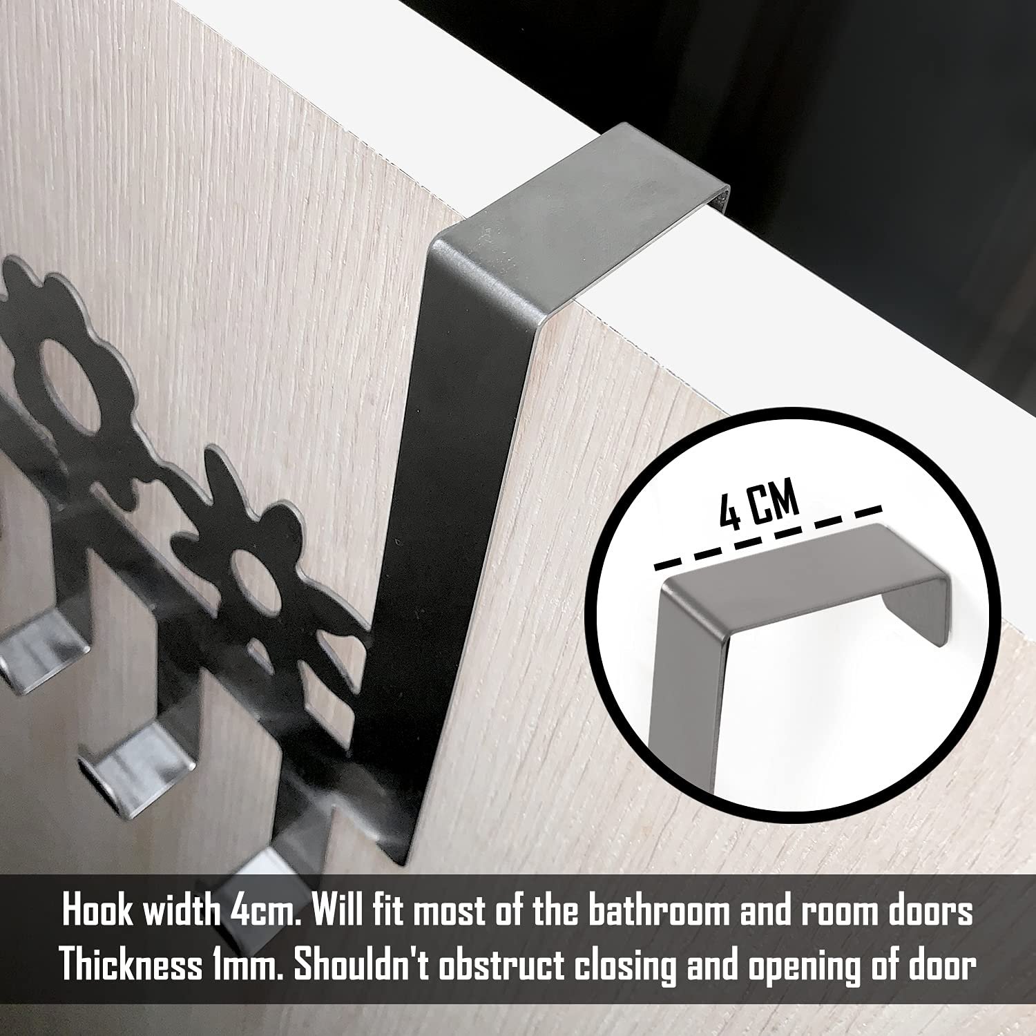 - Thoughtful Design: The door hanger has a tough durable material. So, it will cause No tears or scratches to your items. The best part of these hooks is that they will not damage your Doors. These are very Sleek and Modern in design and a match Made In Heaven.
