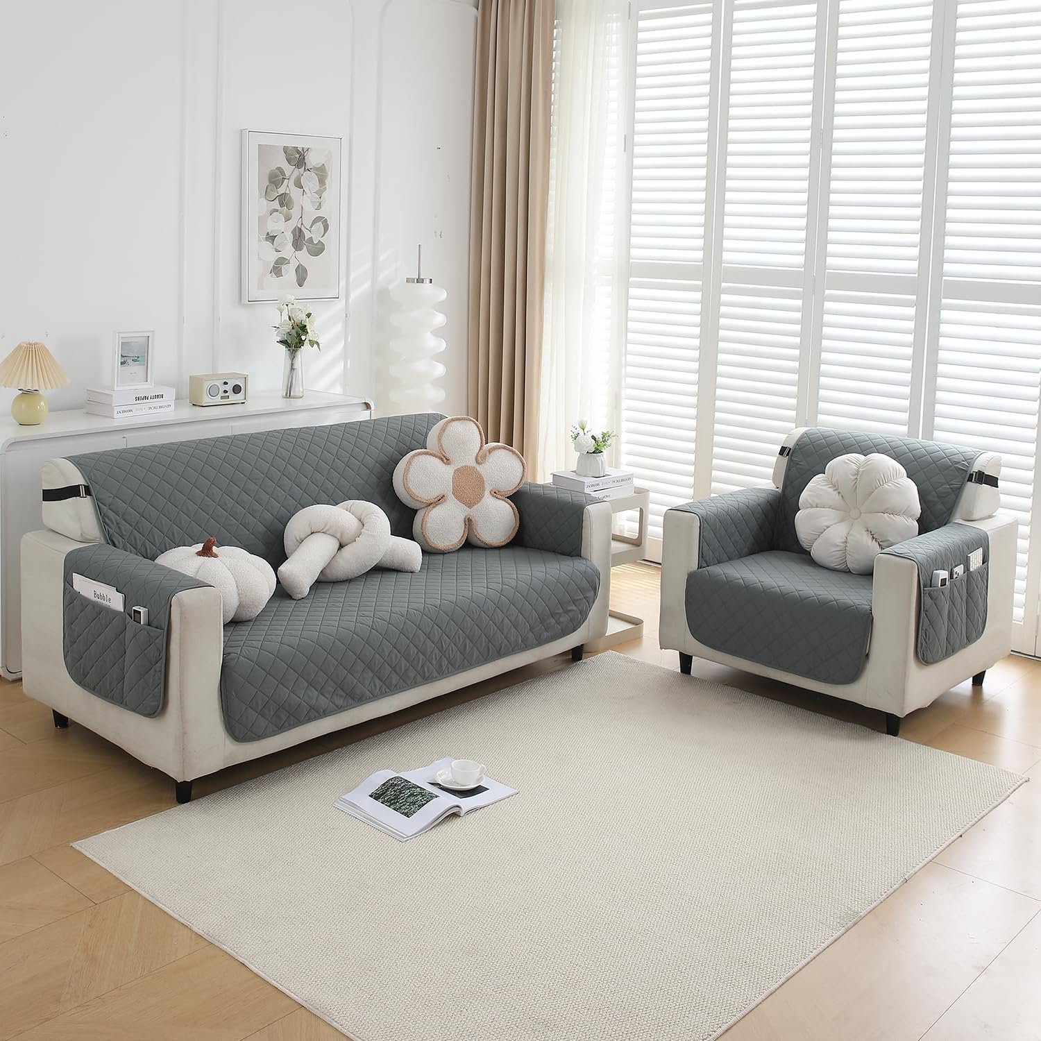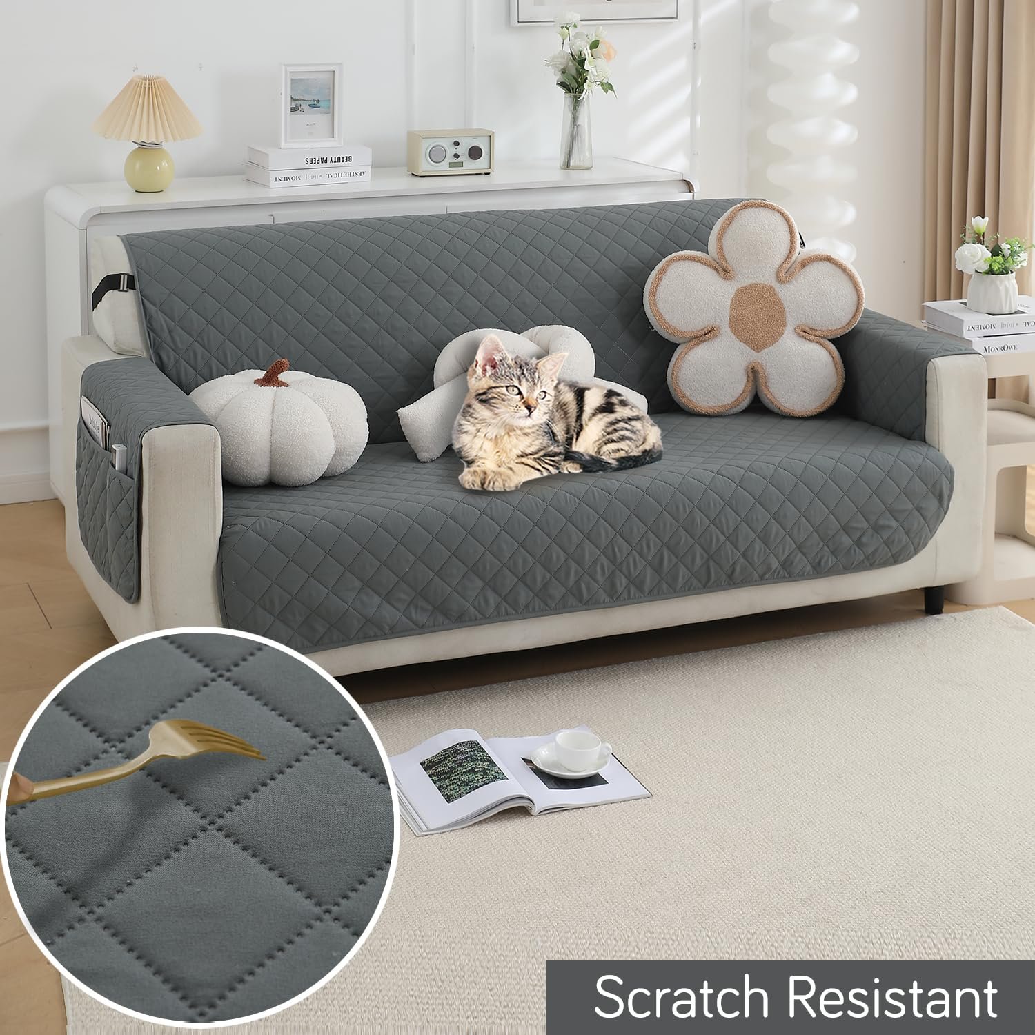 This premium sofa slipcover features a four-layer construction: a top layer of 80 GSM polyester with a water-repellent coating, soft microfiber cushioning for added comfort, a TPU waterproof layer to block spills, and a durable polyester backing. Whether you’re dealing with pets, kids, or daily wear, this sofa protector keeps your couch safe and stylish.